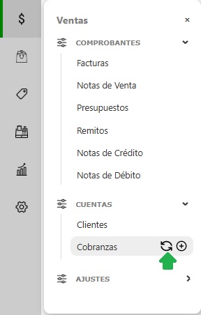 Seleccioná el botón que se encuentra al lado del "+" en la sección Cobranzas para generar una nueva asociación.