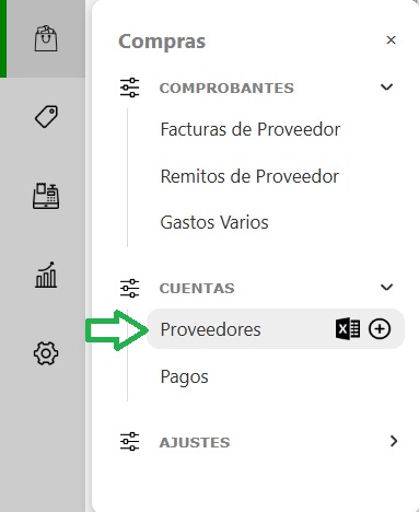 Para ver el listado de proveedores, ingresá en el panel de funciones que se encuentra a la izquierda, en el módulo Compras ➜ Cuentas ➜ Proveedores.