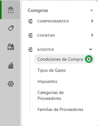 Para ingresar al listado de condiciones de compra tenes que seguir estos pasos: Ir al panel de funciones de la izquierda