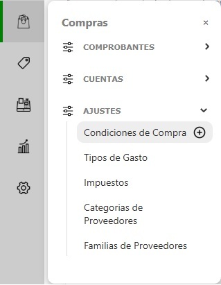 En el panel lateral izquierdo, dentro del módulo Compras, hacé clic en Ajustes