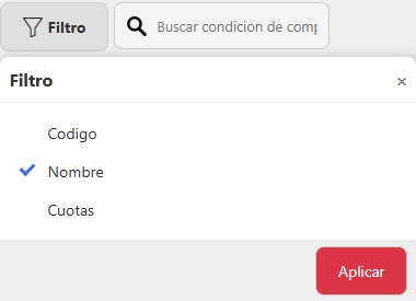- Filtro: Puede ser Código, Nombre, Cuotas.