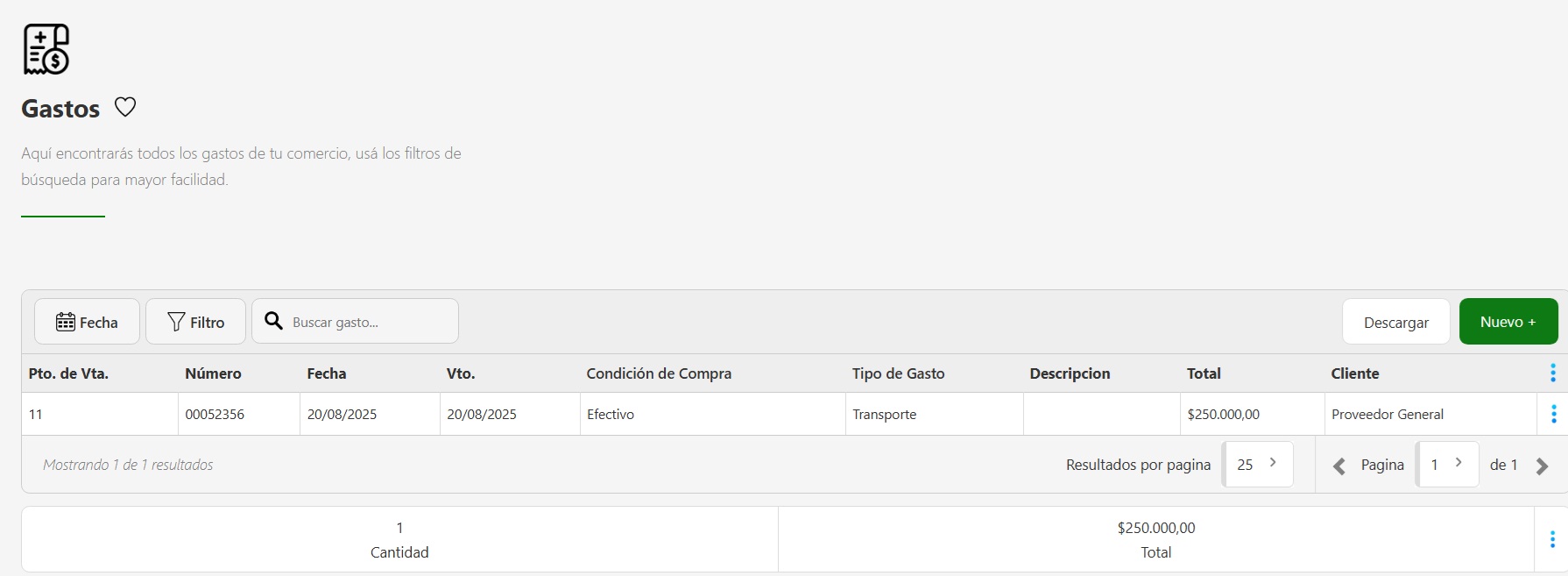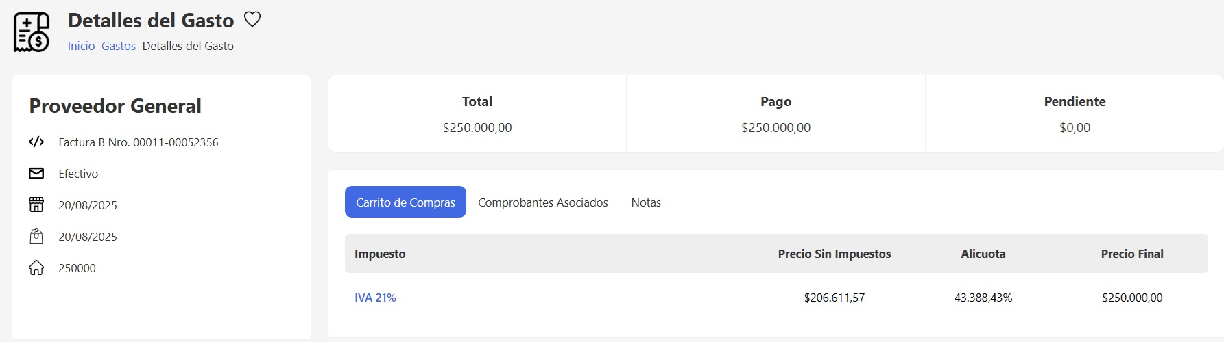 Ver gastos: es una vista rápida con los datos principales del comprobante.
