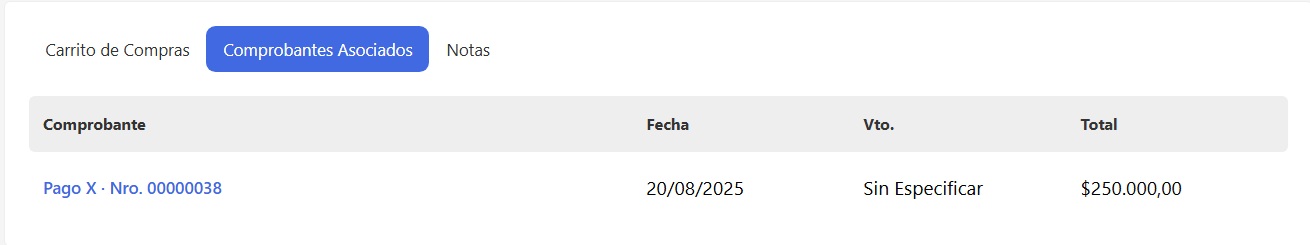 En esta pestaña vas a encontrar todos los comprobantes que estén asociados a ese pago