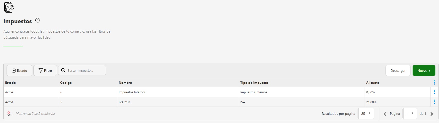 🧾¿Cómo veo los Impuestos que tengo cargados en el sistema?