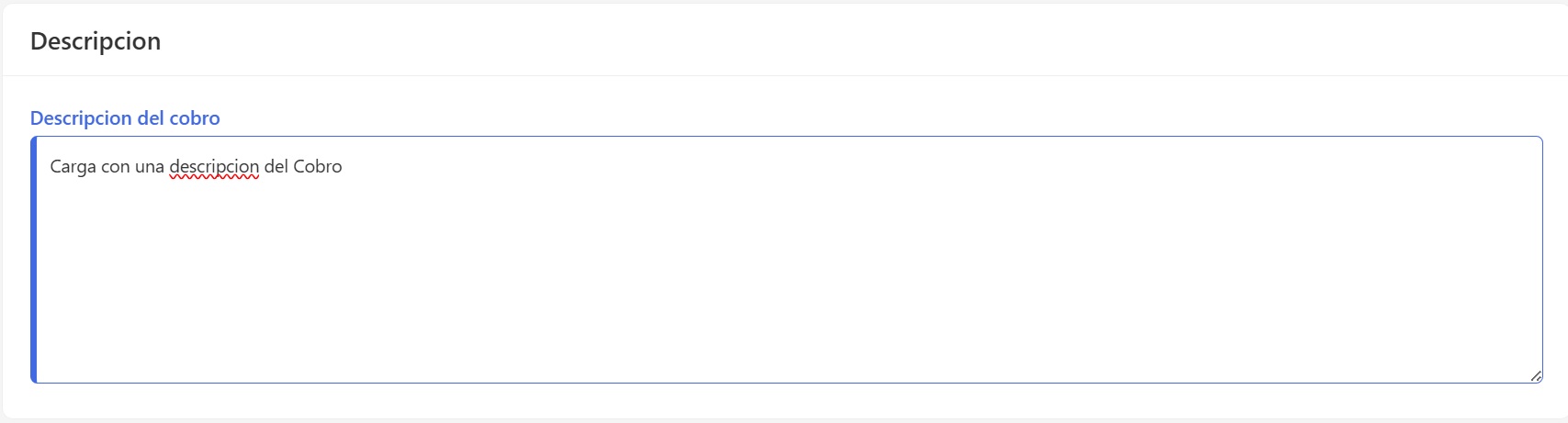 En este tipo de cobros no vas a tener la opción de asociar un comprobante o una cuota, en su lugar vas a poder agregar una descripción.