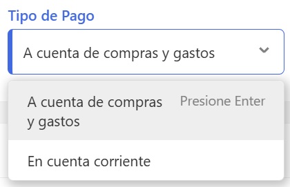 Tipo de Pago: Podes elegir si el pago que estás por realizar va a ser un pago por un comprobante emitido o un pago a cuenta.