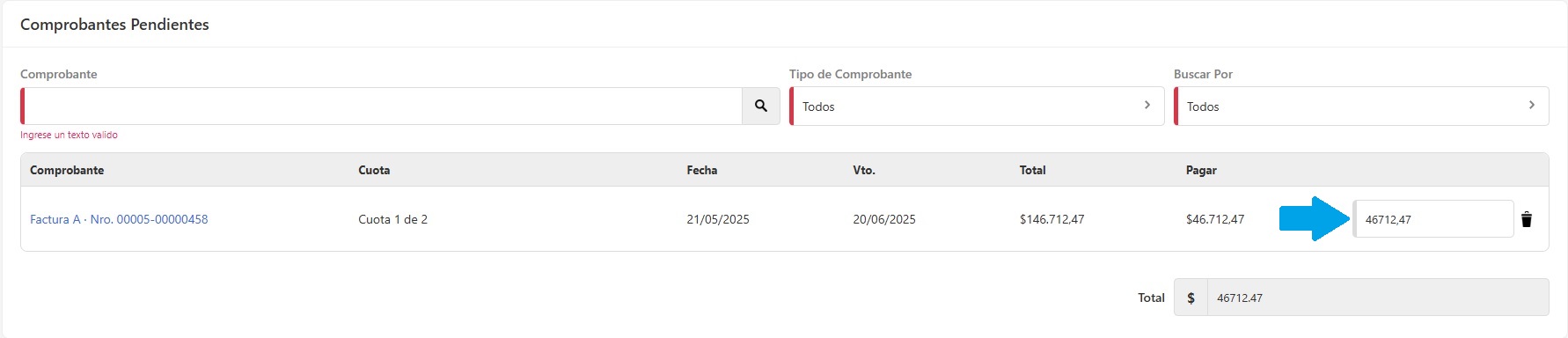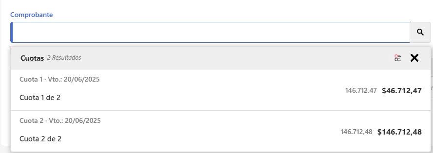 En esta sección realizá la búsqueda de los comprobantes con sus respectivas cuotas para asociar al pago que querés generar.