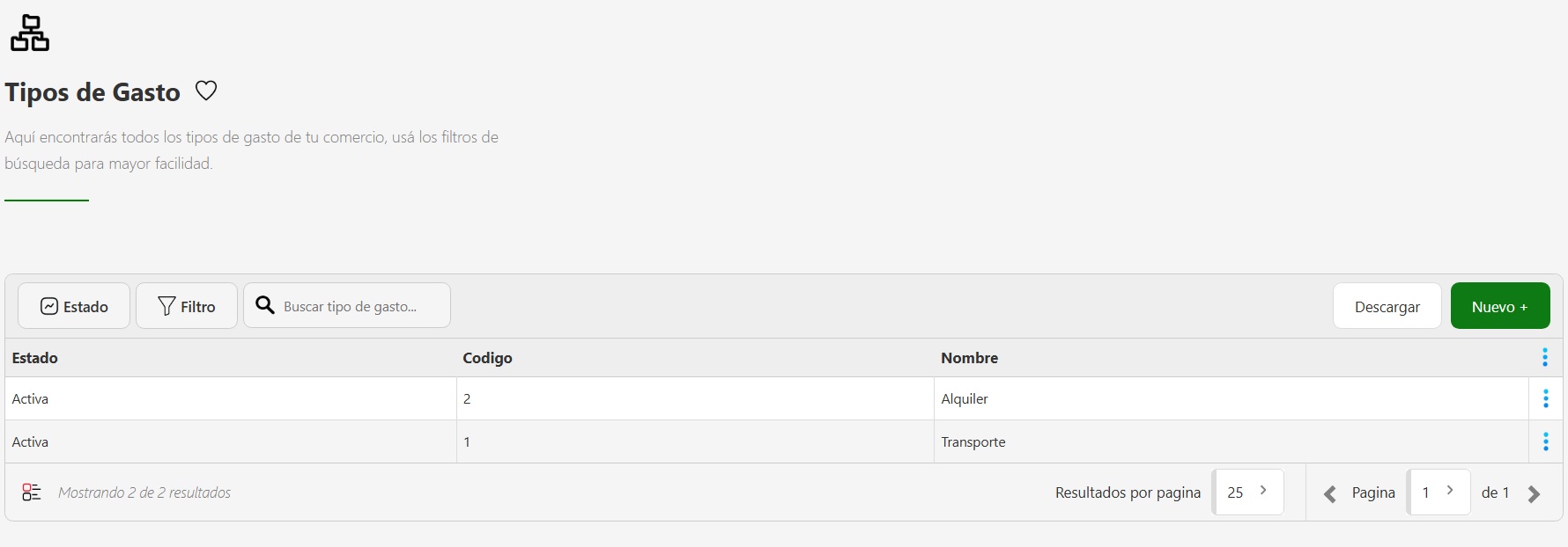 - Inactivo → No aparecerá como opción al momento de cargar un gasto.