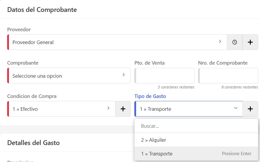 - Campo libre para agregar más detalles sobre el uso del tipo de gasto.