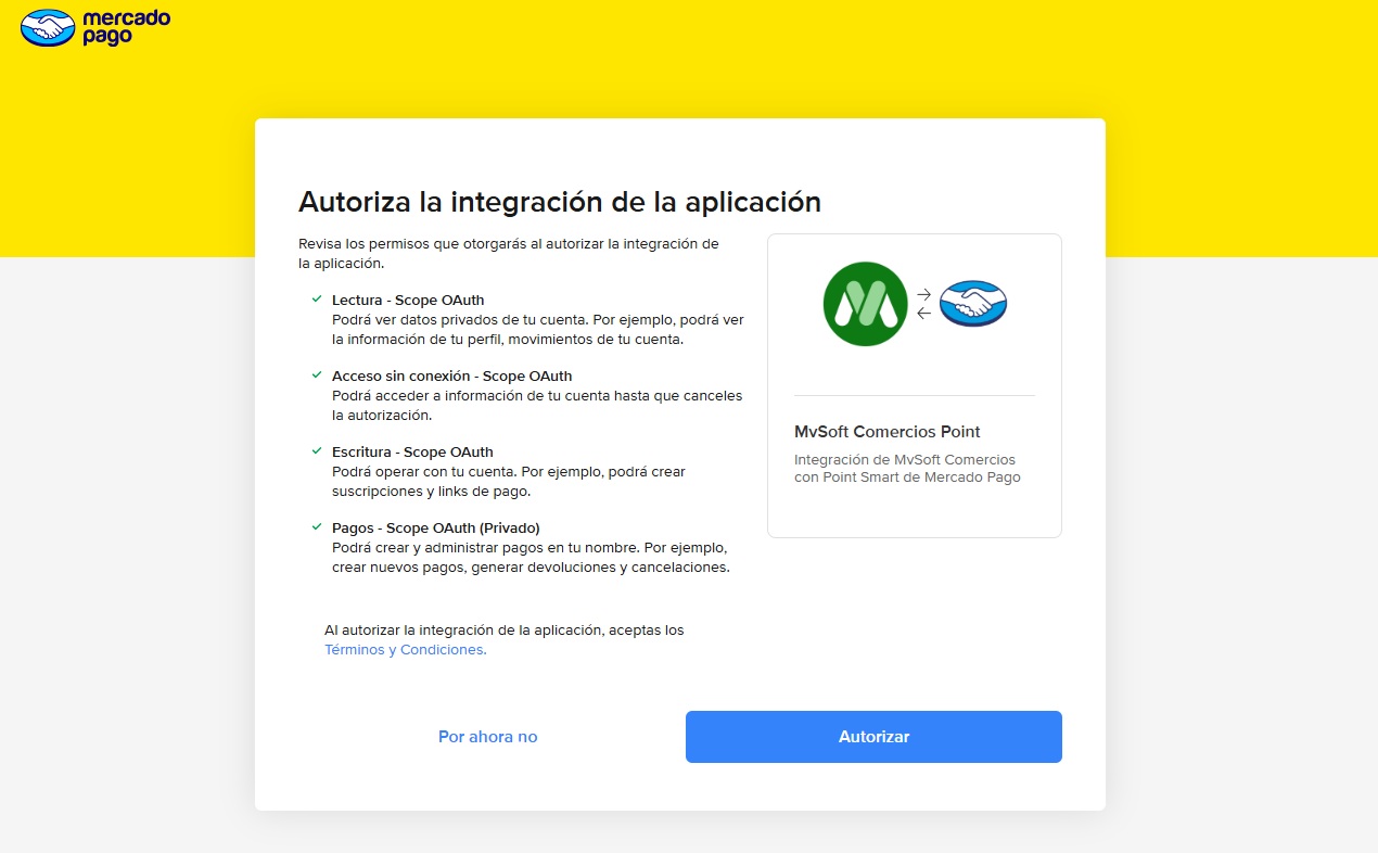 Una vez logueado con tu cuenta de Mercado Pago acepta la autorización