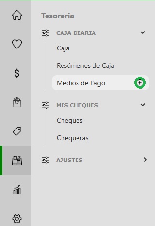 Para crear el medio de pago para el Point Smart de Mercado Pago tenes que ingresar en la sección Tesorería -> Medios de Pago -> +