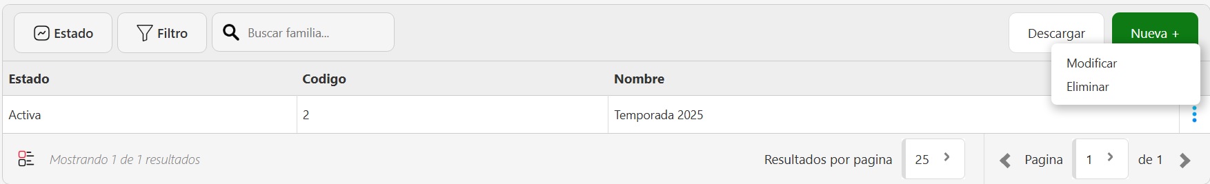 También podés editar o eliminar Familias completas desde el panel de Familias, haciendo clic en la familia o ingresando en los 3 puntos te aparecerán las opciones.