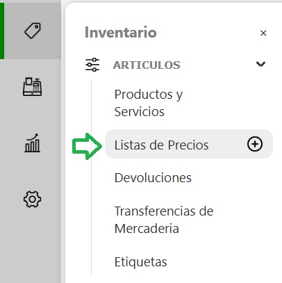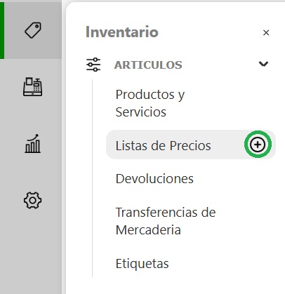 Para crear una nueva lista de precios ingresá desde el panel izquierdo en: Inventario → Artículos → Listas de precio y hacé clic en el botón +.