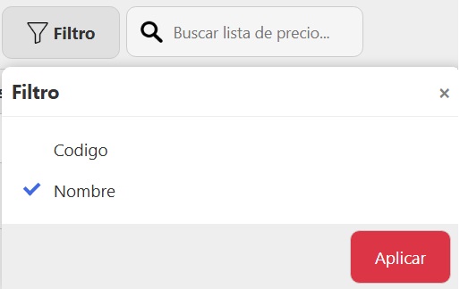 - Filtro: puede ser Código o Nombre