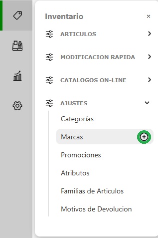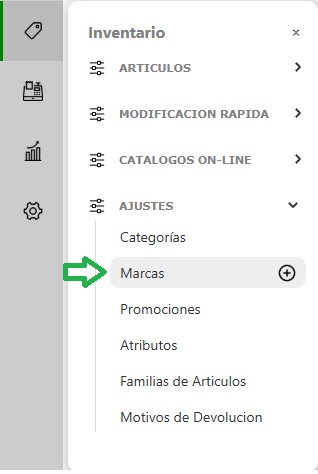 Inventario → Ajustes → Marcas - Hacé clic en el botón ➕ que está al lado de marcas.
