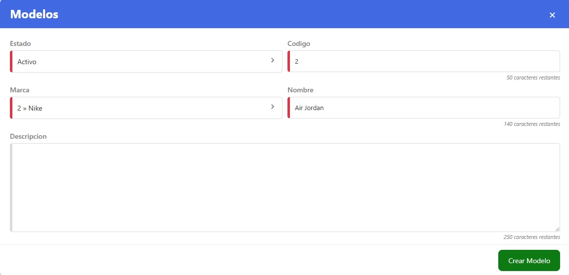 En las opciones de Marca vas a poder crear Modelos que van a quedar asociados a la misma, para eso hace lo siguiente.
