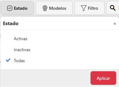 - Modelo: puede No incluir, Solo Activos, Solo Inactivos o Todos.
