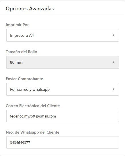 En esta sección te aparecerán los datos de contacto que cargó el comprador a la hora de generar el pedido. Podrás enviarselo por whatsapp o por correo.