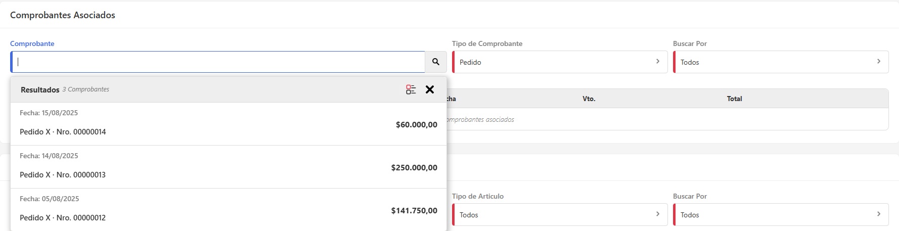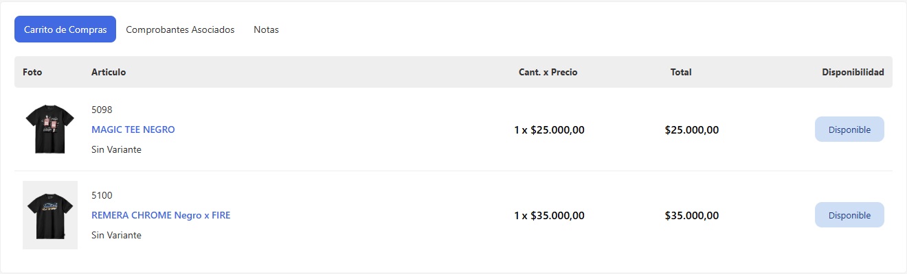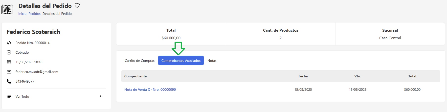 En este apartado vas a poder observar los comprobantes que se generaron a partir de este pedido