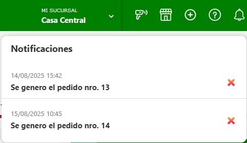 Una vez que un cliente genere un pedido, recibirás una notificación en la barra superior, a la derecha, en el ícono 🔔. Allí encontrarás el mensaje "Se generó el pedido Nro. XX", junto con la fecha y hora de recepción.