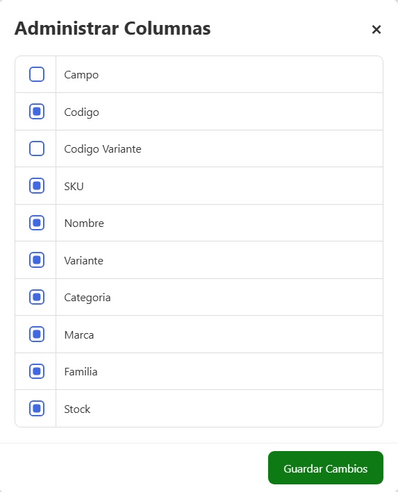 - Marca: podés limitar el reporte a una o varias marcas específicas, lo cual es útil si trabajás con múltiples proveedores o querés analizar existencias por marca.