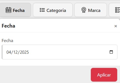 - Por fechas: este filtro te permite limitar los resultados a productos que hayan tenido movimientos de stock dentro de un rango de fechas determinado. Ideal para analizar qué productos siguen en stock tras cierto período de ventas o ingresos.