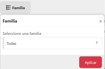 - Familia: permite ver el stock agrupado por familia de productos, que es una forma más personalizada de clasificar tus artículos (por ejemplo, “Colección Verano”, “Pack Regalo”, etc.).