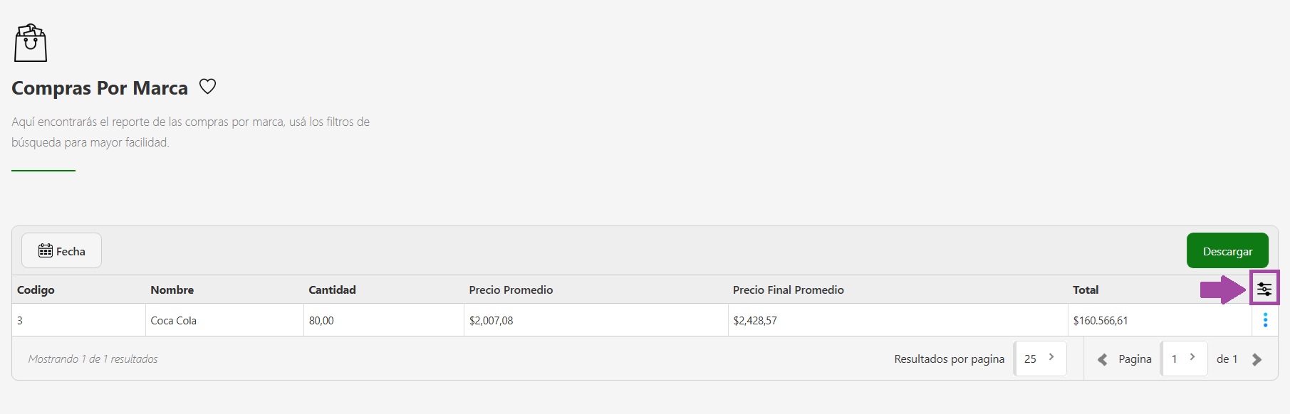 - Visualizá la información: Al ingresar, se muestra un listado con el detalle de las compras agrupadas por marca, con todos los datos relevantes sobre cantidades, precios y totales.