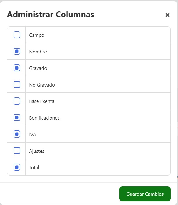 Haciendo clic en Ajustes activa o desactiva las distintas columnas a mostrar