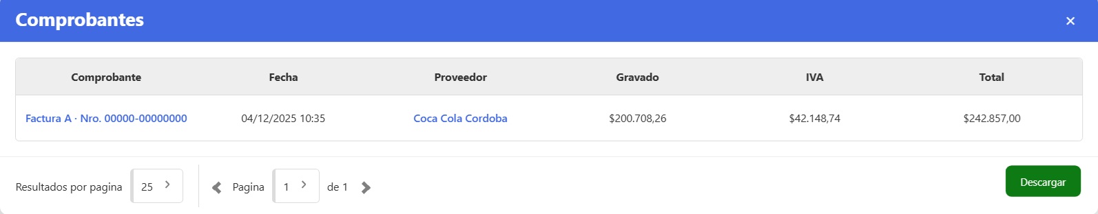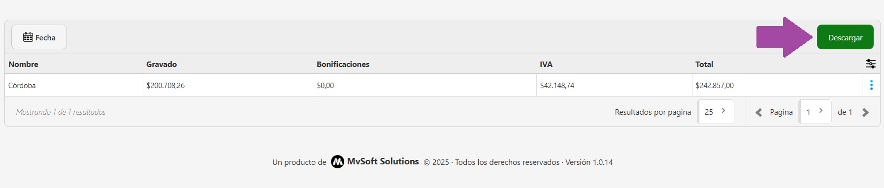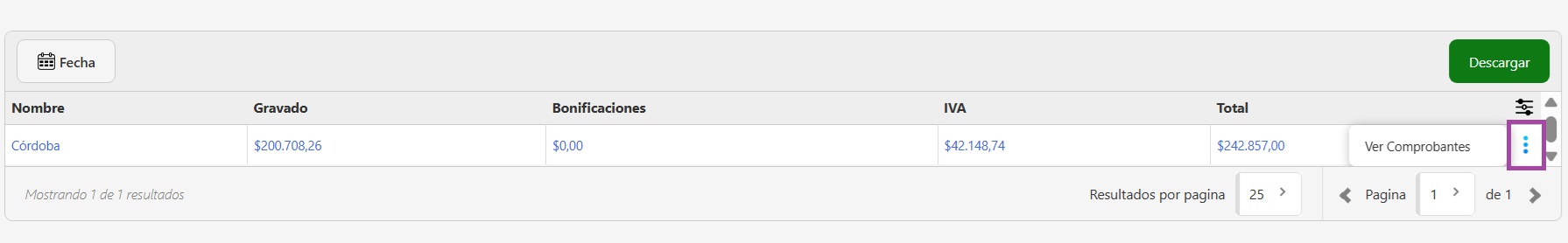 - Ver Comprobantes: aquí vas a ver todos los comprobantes de compras que fueron realizadas a clientes de esa provincias y que componen al Total de ese período solicitado.
