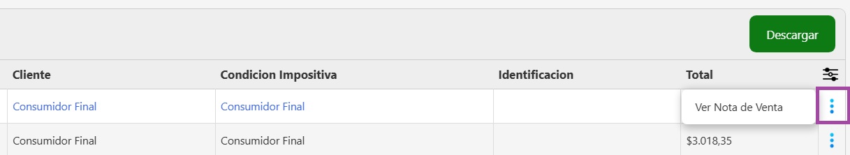 - Ver Nota de Venta: aquí vas a ver todos los detalles de esa nota de venta.