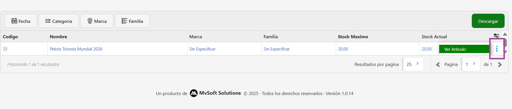 - Ver Articulo: el detalle del artículo con toda la información y trazabilidad del mismo.