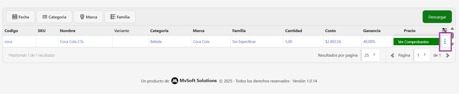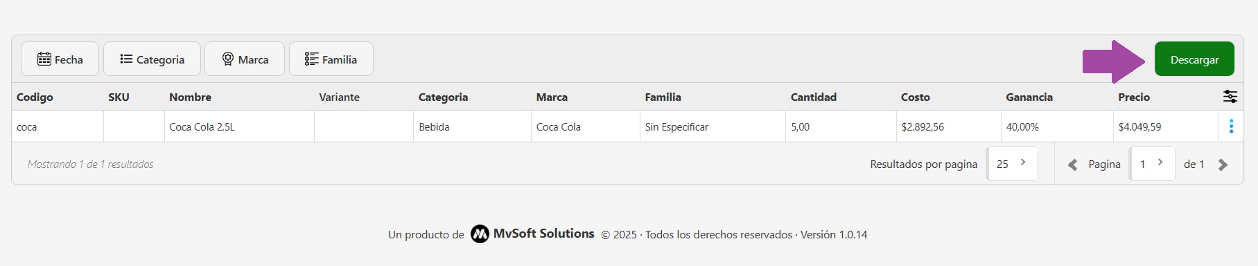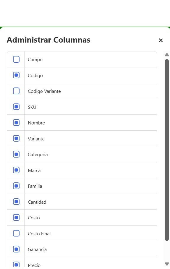 - Familia: Familia de productos (si está agrupado por alguna lógica interna).