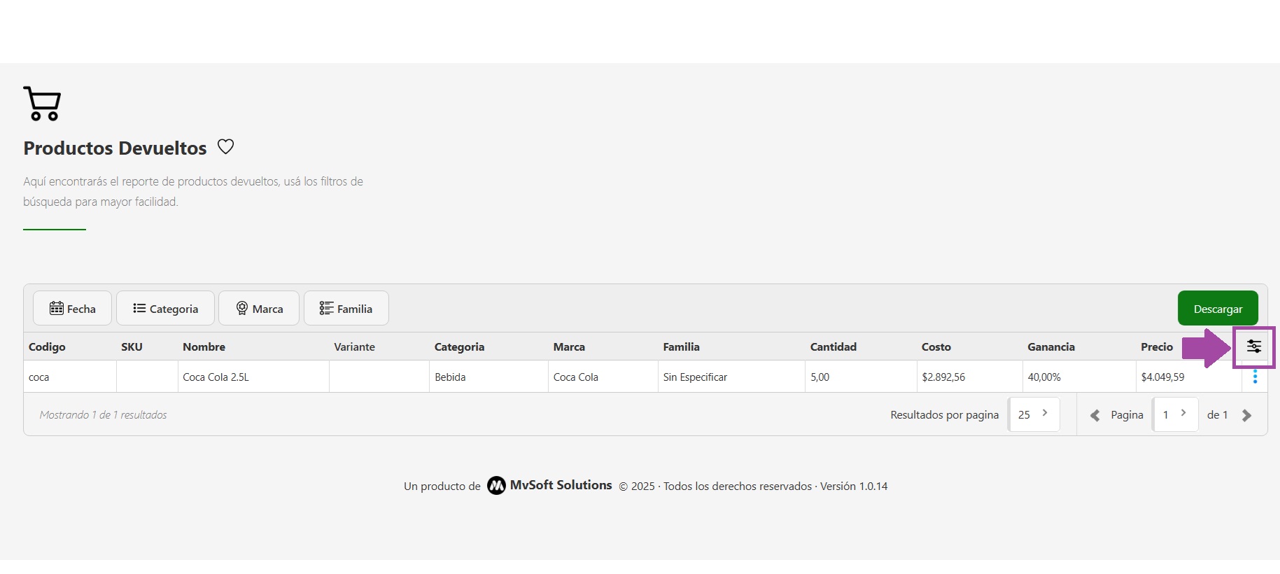 - Por Familia: Buscá devoluciones de productos agrupados en una misma familia (por ejemplo: “Navidad”, “Liquidación”, etc.).