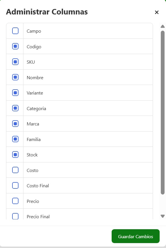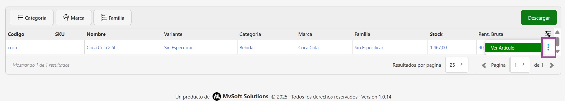- Visualizá la información:En la pantalla vas a poder ver los siguientes datos de cada producto:
