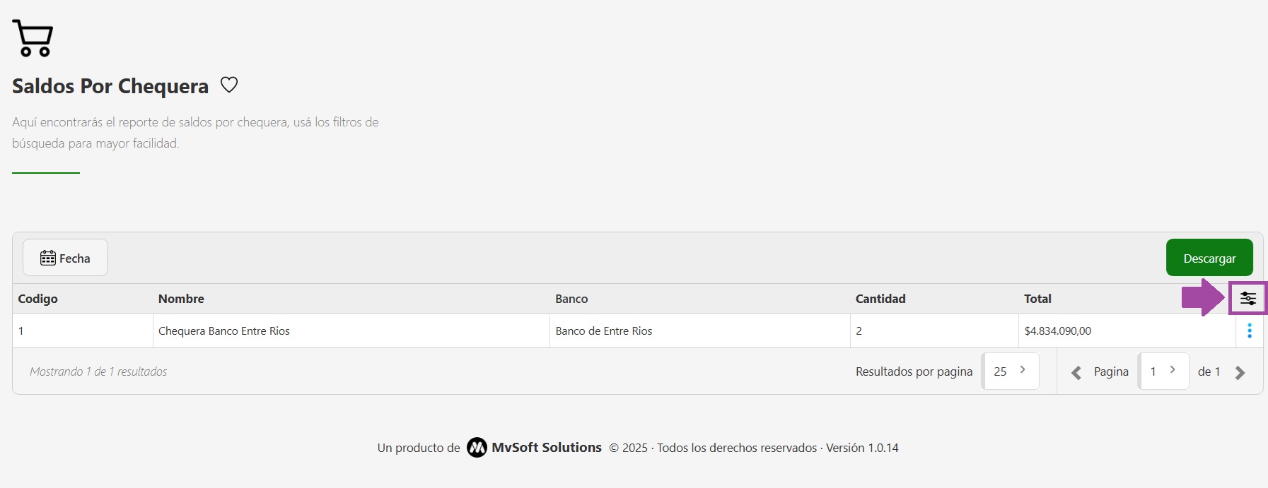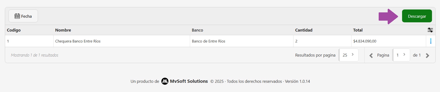 - Total Disponible: Valor total de los cheques disponibles en esa chequera.