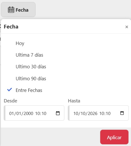 Filtro por fechas: permite analizar el movimiento o saldo de cada chequera en un rango personalizado, ideal para conciliaciones mensuales o seguimientos puntuales.