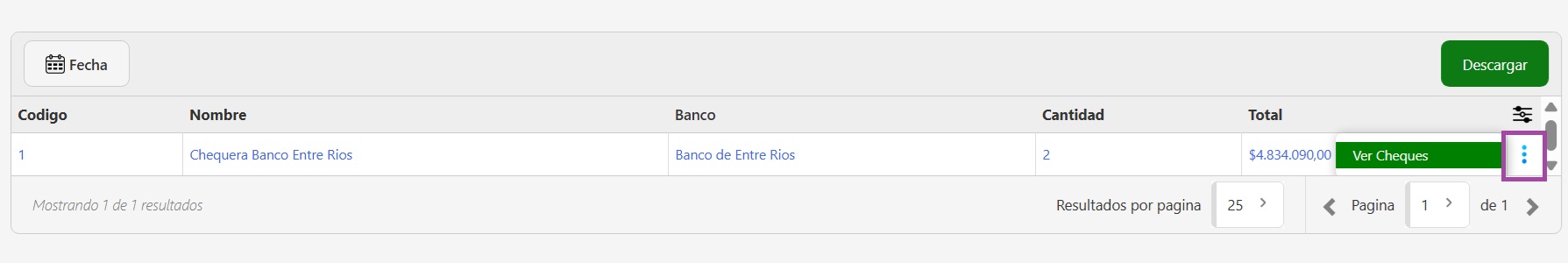 - Ver Cheques Asociados: accedés al listado completo de cheques emitidos o registrados dentro de esa chequera.