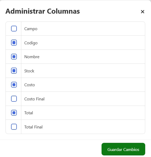 - Total Final: Valor total del inventario en esa categoría (Stock × Costo Final) con impuestos .