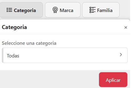 - Familia: filtrá por familia de artículos definidos en tu inventario. Ejemplo: “Navidad 2025”, “Outlet”, “Productos ecológicos”