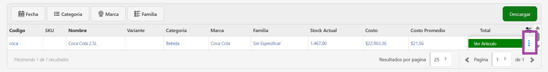- Visualizá la información:En la pantalla vas a poder ver los siguientes datos de cada producto: