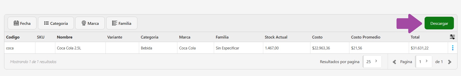 - Marca: enfocá el análisis en una marca puntual. Ideal para revisar el valor promedio del stock de una línea de productos.