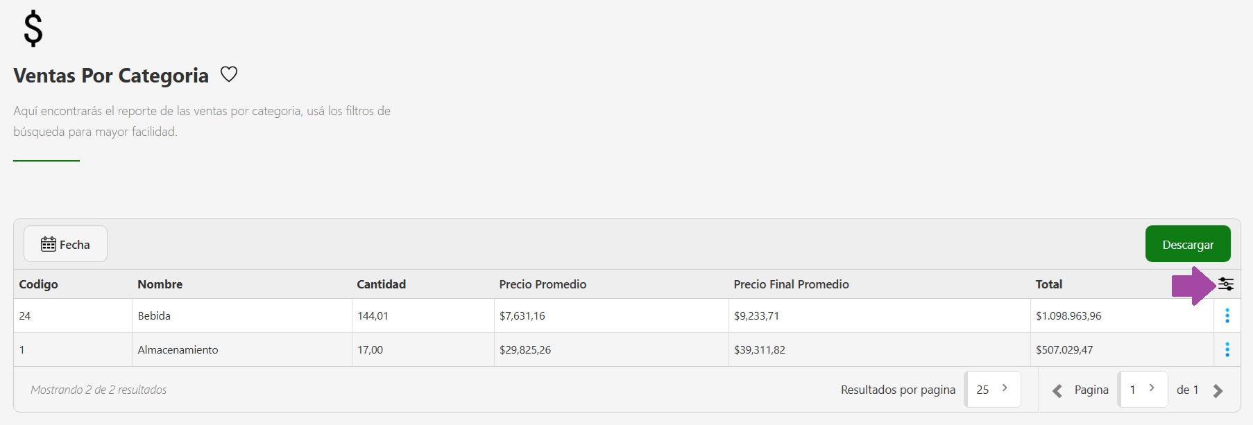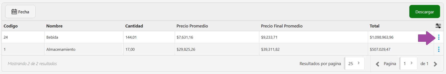 - Visualizá la información: Al ingresar, vas a ver un listado con la siguiente información por cada categoria: