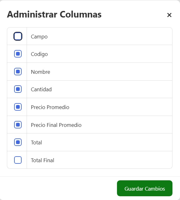 Haciendo clic en Ajustes activa o desactiva las distintas columnas a mostrar