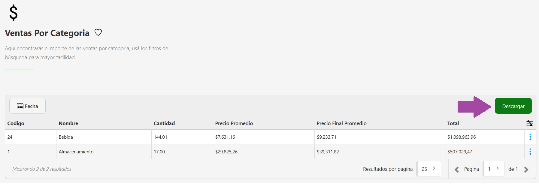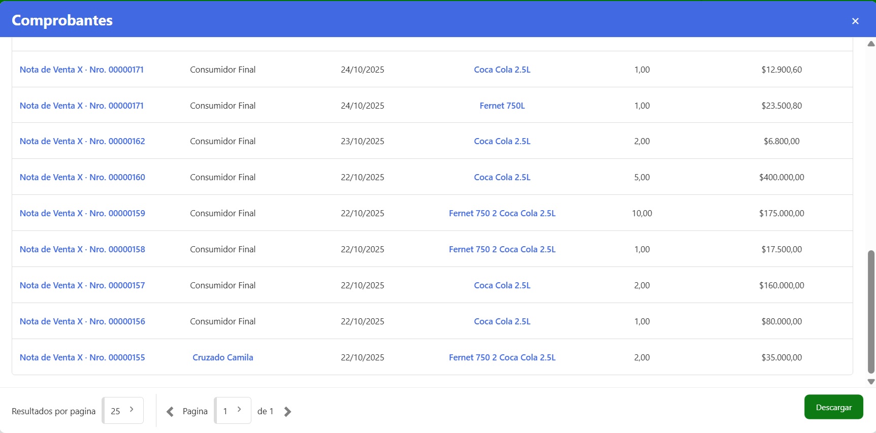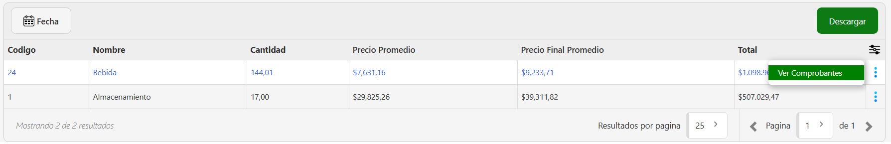 Ver Comprobantes: aquí vas a ver todos los comprobantes de venta que contengan productos de esa categoría y que componen al Total de ese período solicitado.