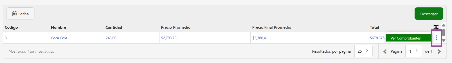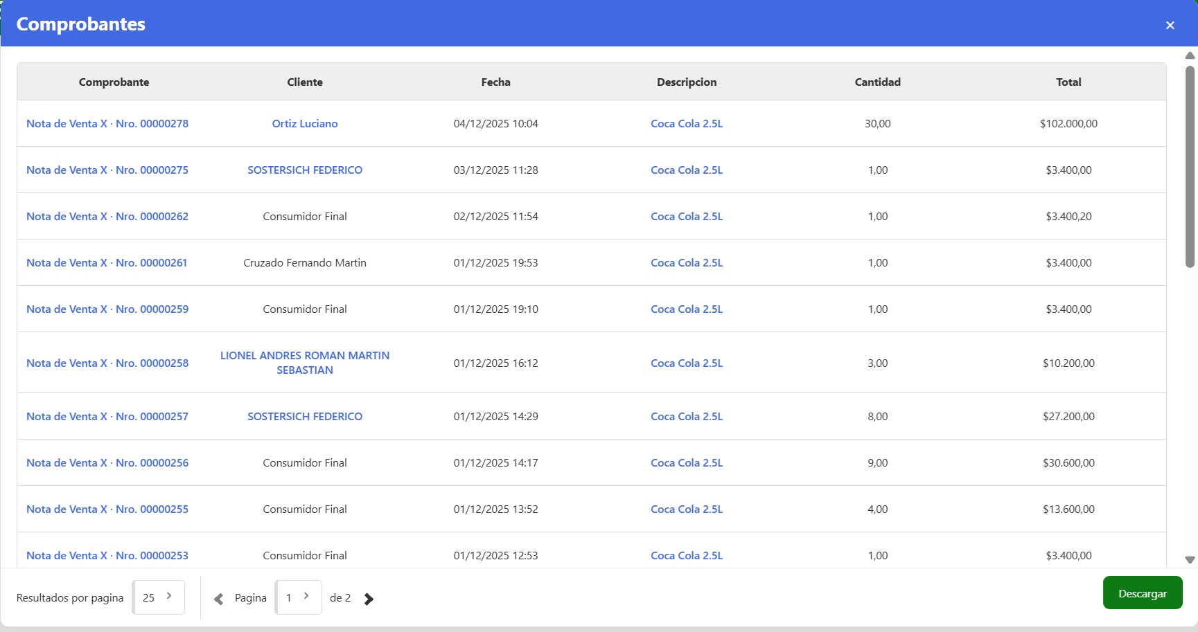 - Ver Comprobantes: aquí vas a ver todos los comprobantes de venta que contengan productos de esa marca y que componen al Total de ese período solicitado.