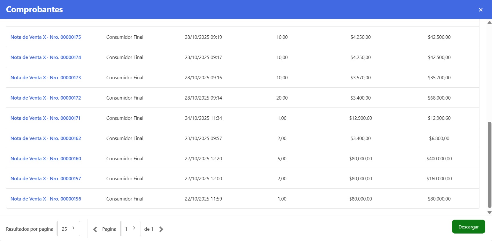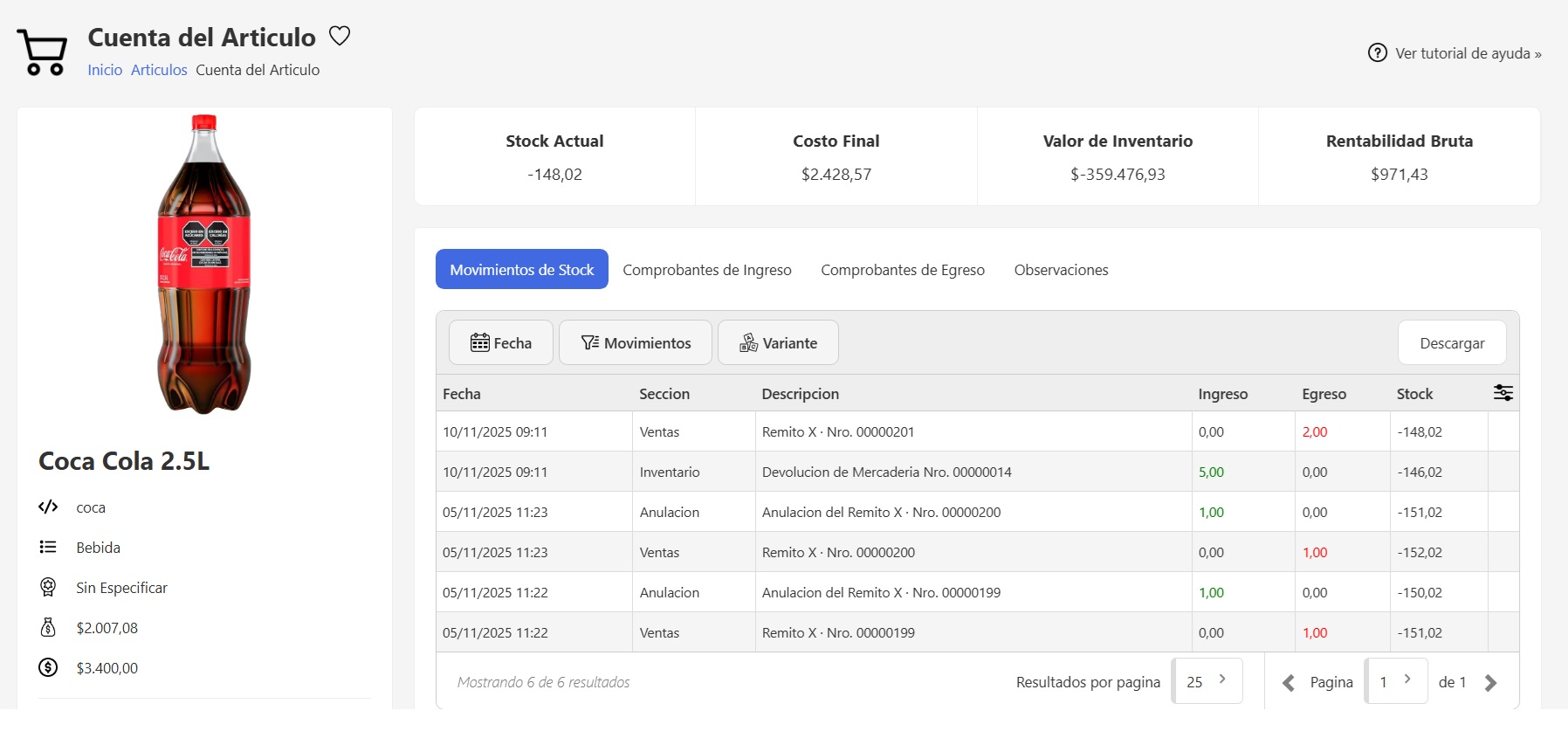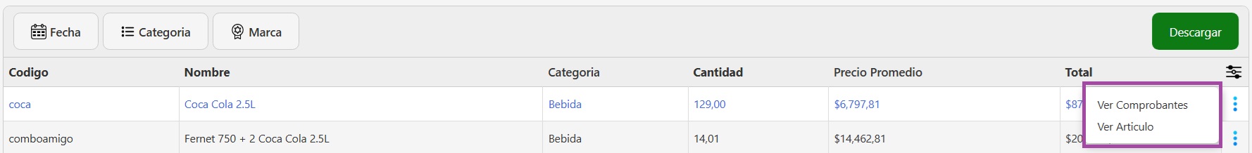 - Ver Comprobantes: accedé a todos los comprobantes de venta en los que fue incluido ese producto o servicio.