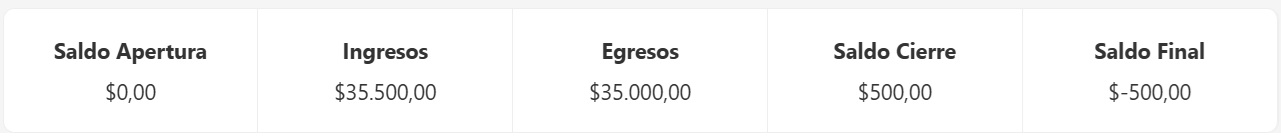 - Saldo Apertura: Importe con el que inicia la caja.