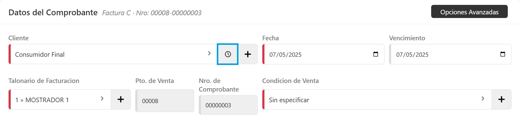 Cuando estés por emitir cualquier tipo de comprobante te va a aparecer la opción con un icono de un reloj.