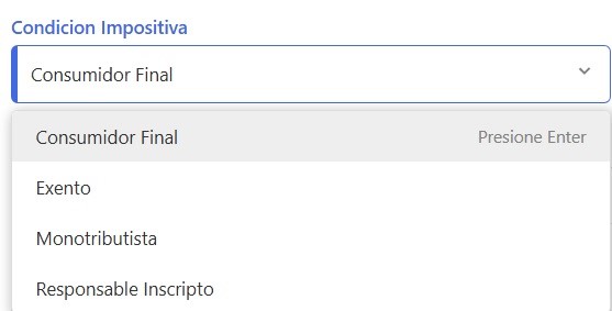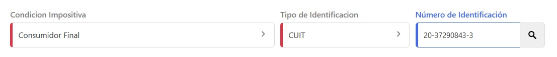 Para completar automáticamente los datos del cliente, selecciona el tipo de identificacion y número, luego hacé clic en la Lupa. El sistema conectará con la base de datos de ARCA y traerá información como la Razón Social, el domicilio y la condición impositiva.